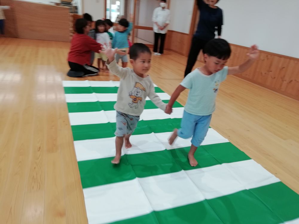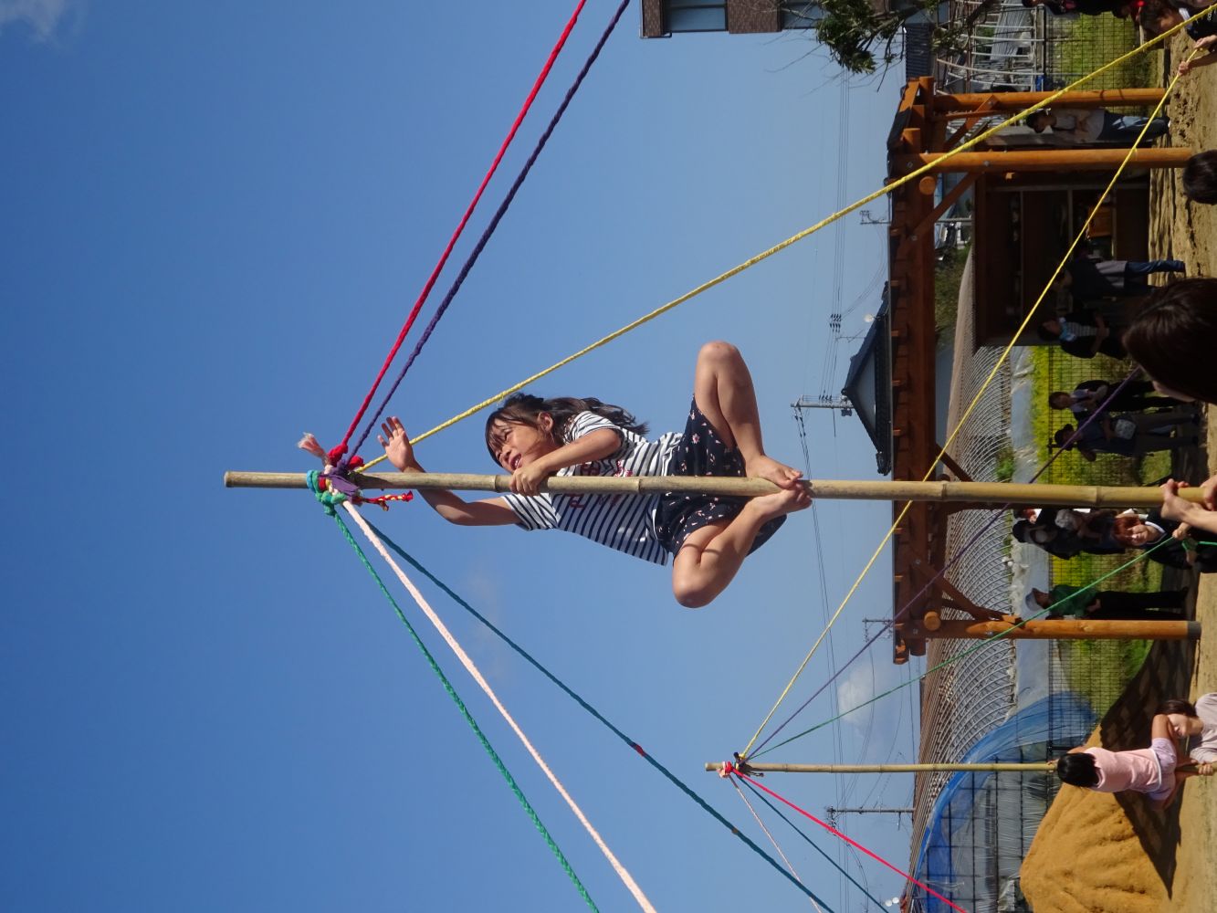 | 運動会を行いました。くじら組(5歳児)は竹のぼりにも挑戦しました。どの競技にもとても意欲的に取り組んでいた子どもたちのでしたよ。 |