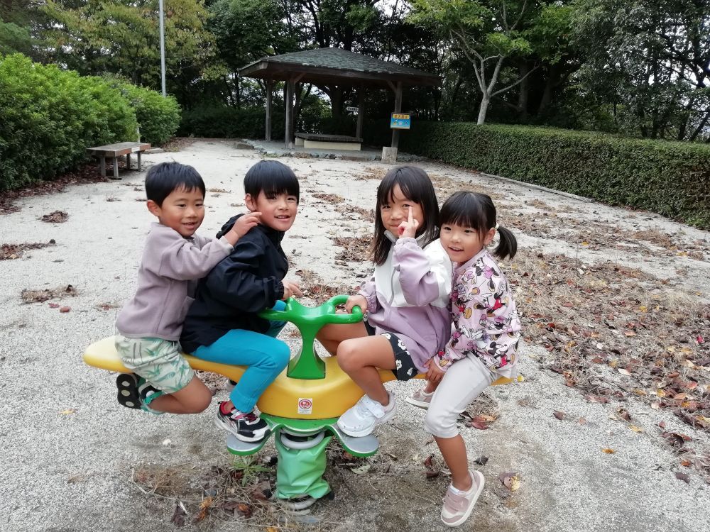 | しろくま組が真幸ヶ丘公園まで出かけました。友だちと一緒に遊ぶことが楽しい子どもたちで、誘い合ってたくさん遊んでいましたよ。 |