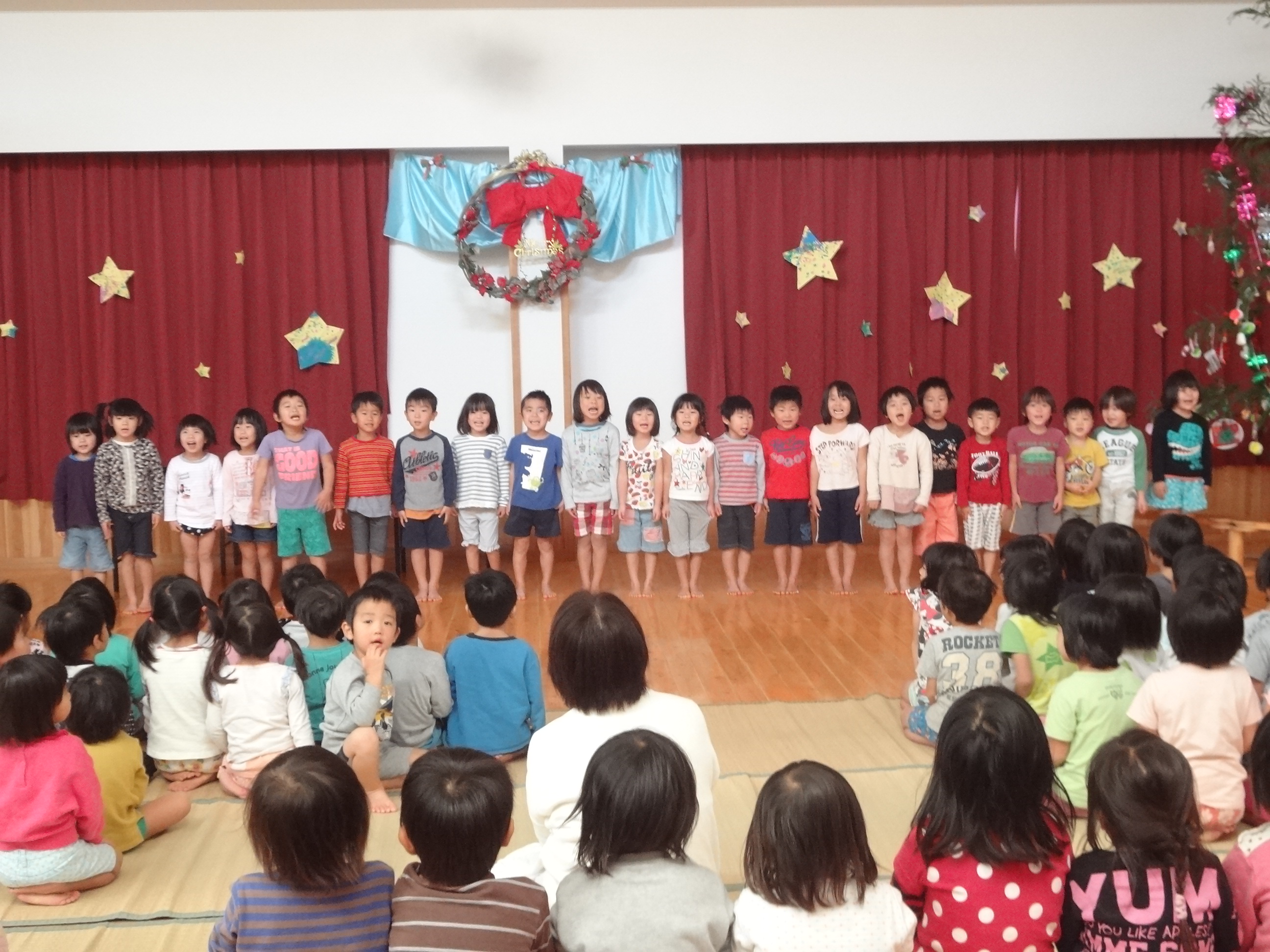 | クリスマス会で歌を歌ってくれたきりん組さんです。張り切っている様子が伺えます。 |