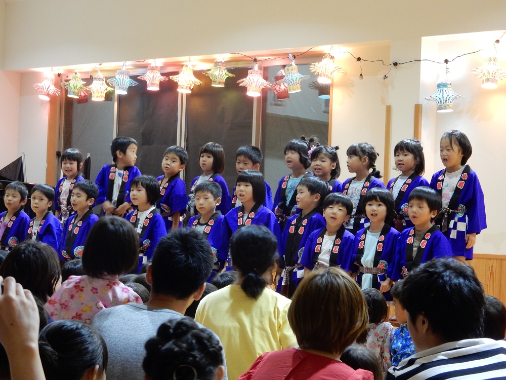 雨の七夕まつりとなりましたが、たくさんの方に来場してもらい、にぎやかに行うことができました。らいおん組は太鼓や歌を披露してくれました。