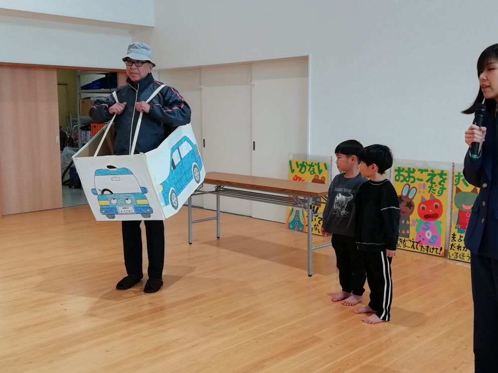 | 防犯教室を行いました。実際にくじら組(5歳児)はロールプレイを体験しました。「いかのおすし」を学びました。 |